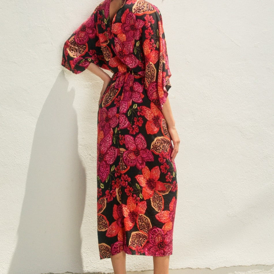 Vestido largo corre a su talla la tela estira ligeramente.