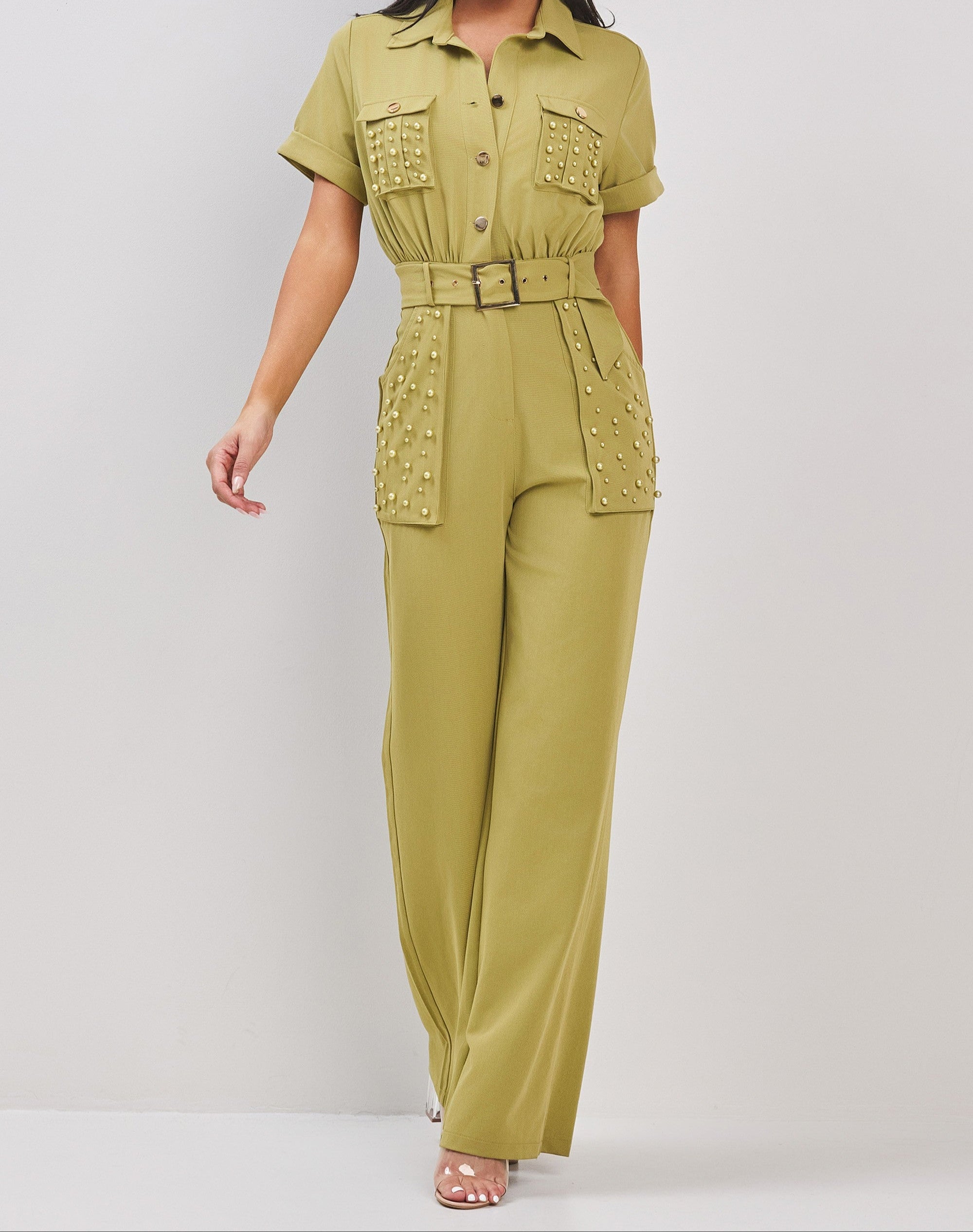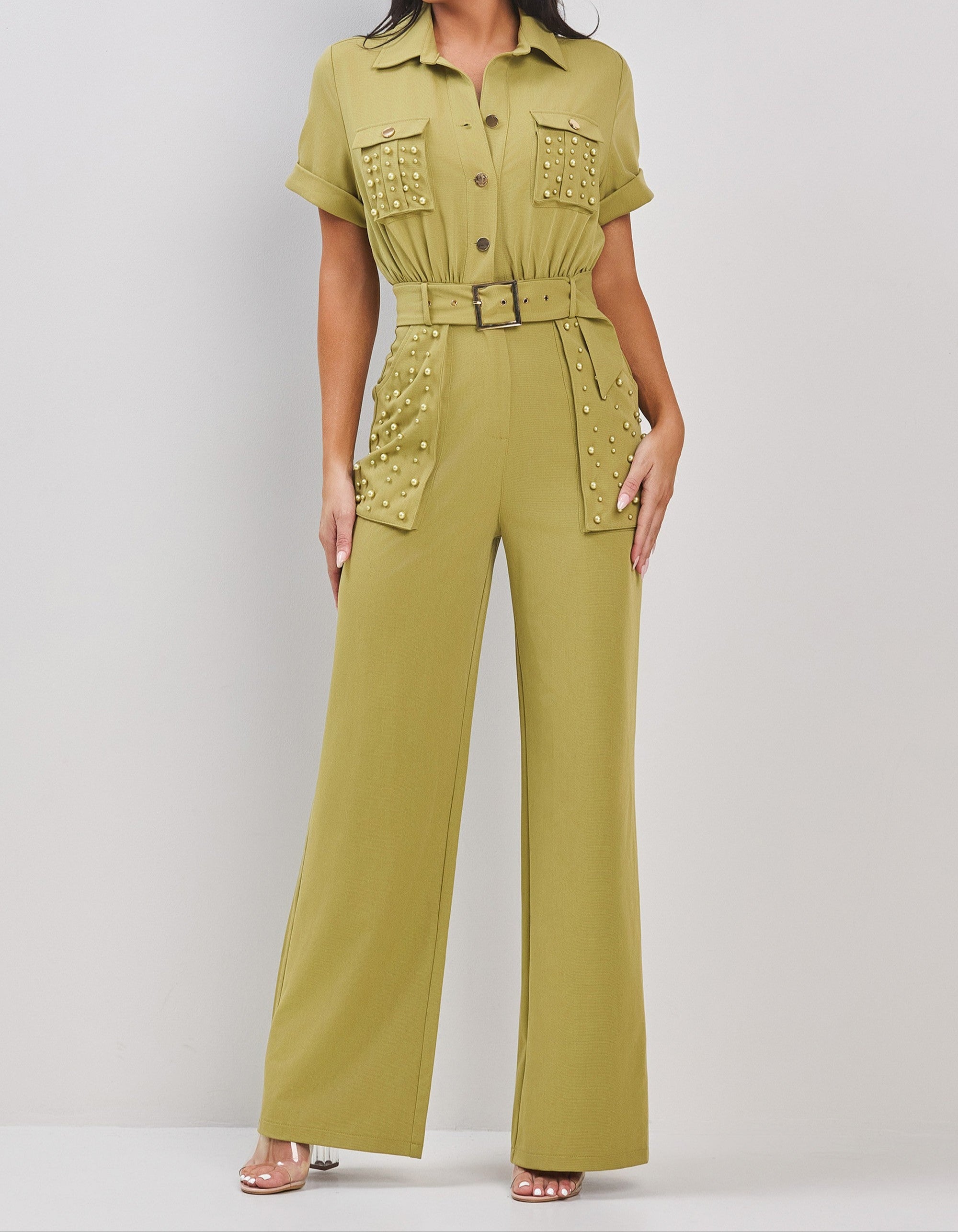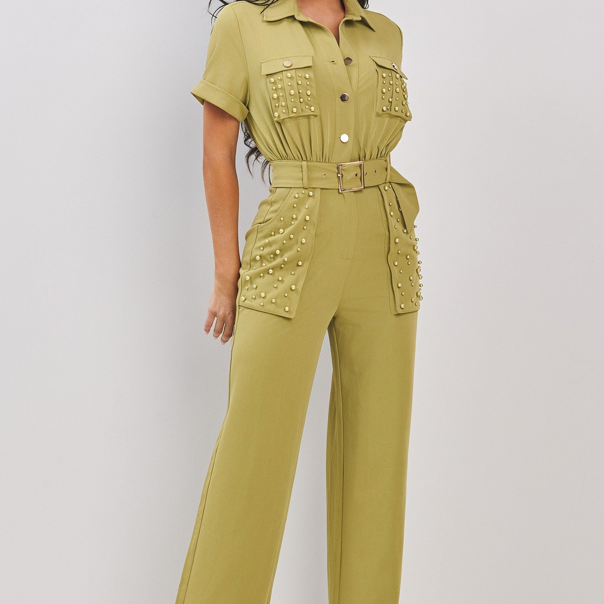 Jumpsuit con aplicaciones de perlas, corre a su talla, no estira.