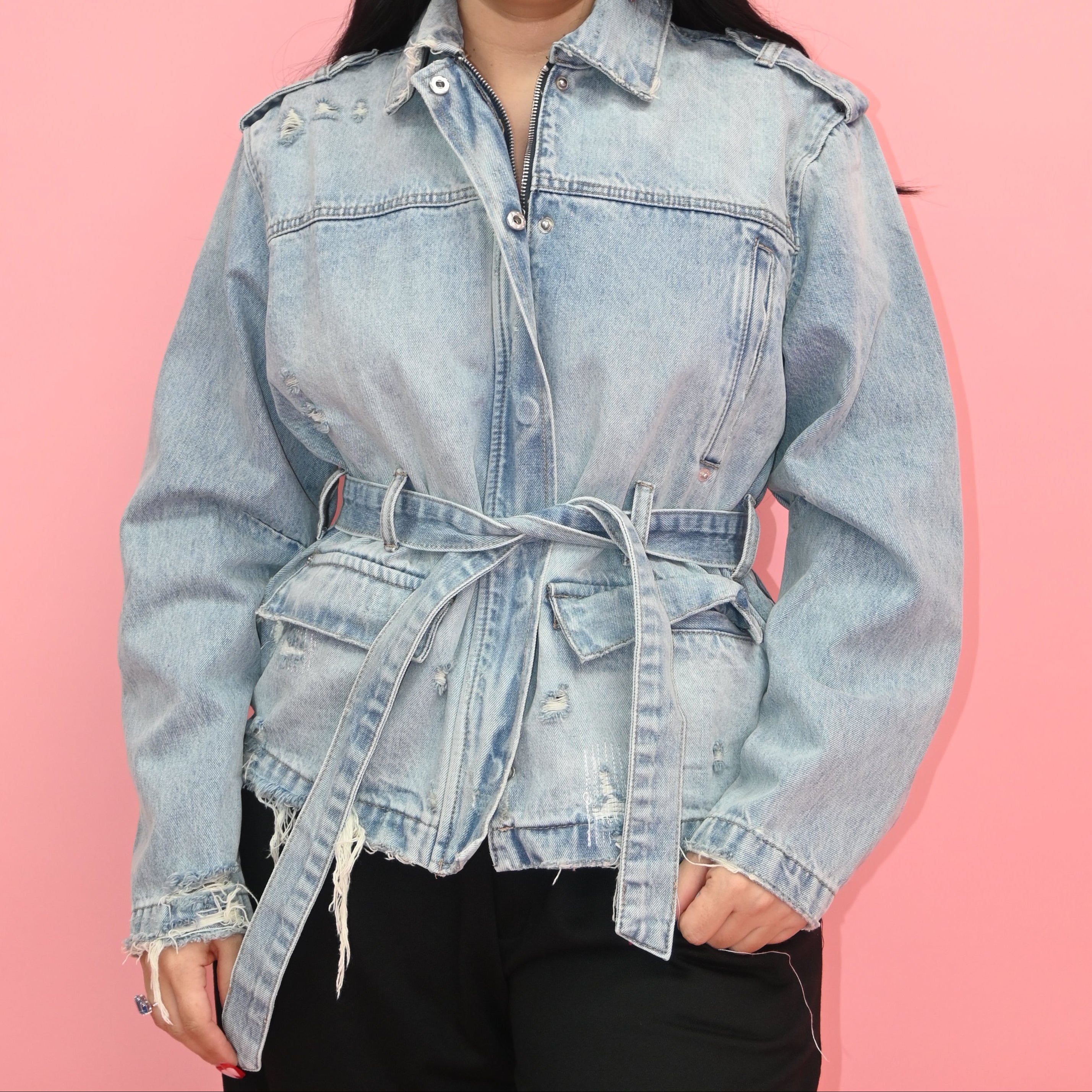 Jacket de mezclilla su tela no estira, corre a su talla.