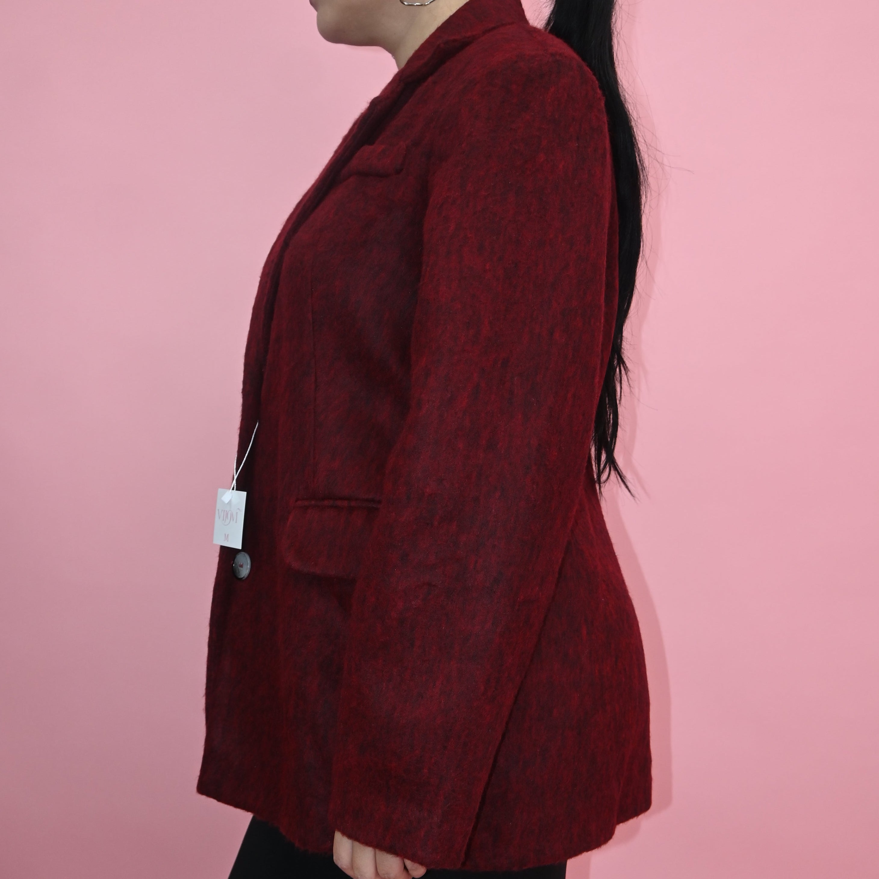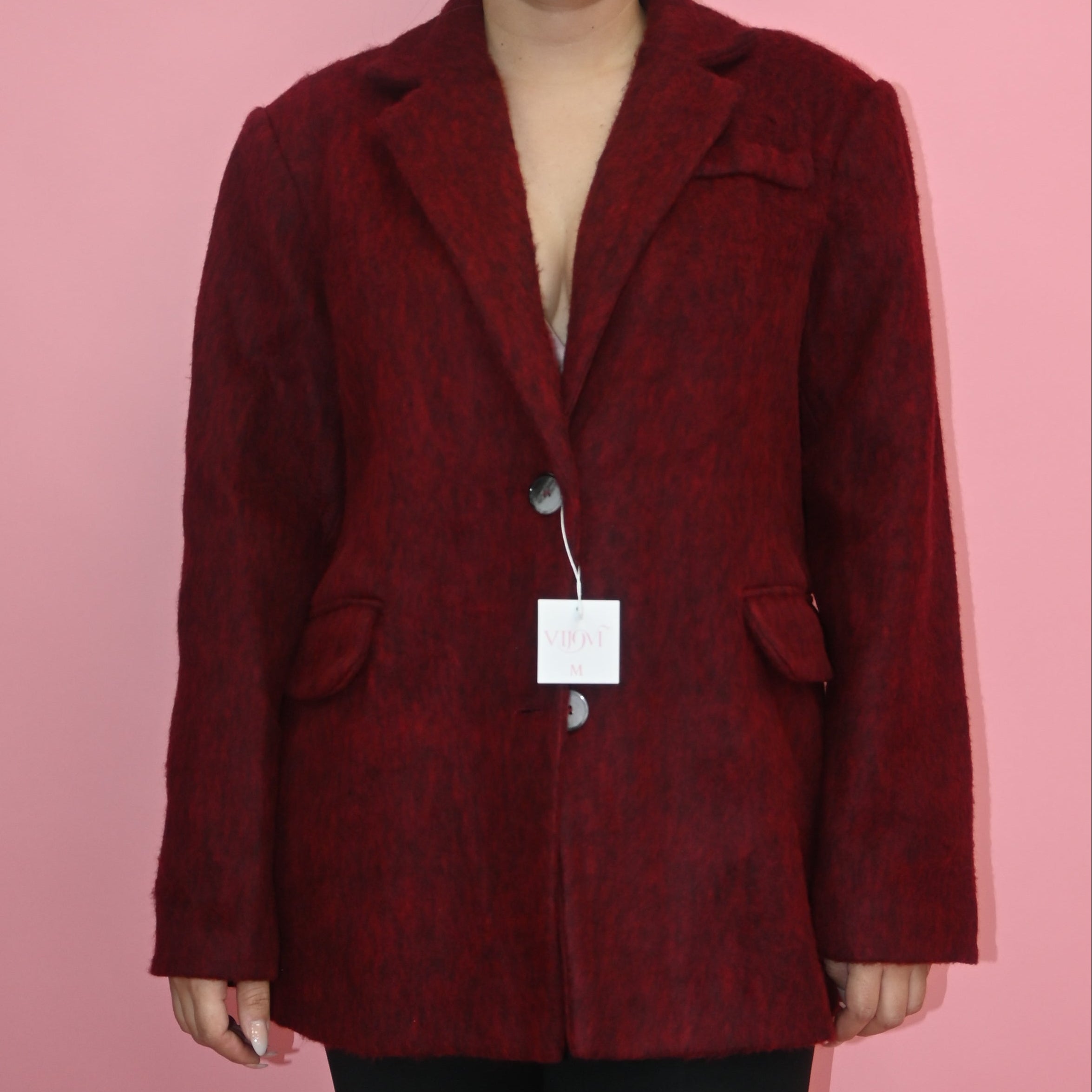 Saco su tela es gruesa corre a su talla no estira la tela.