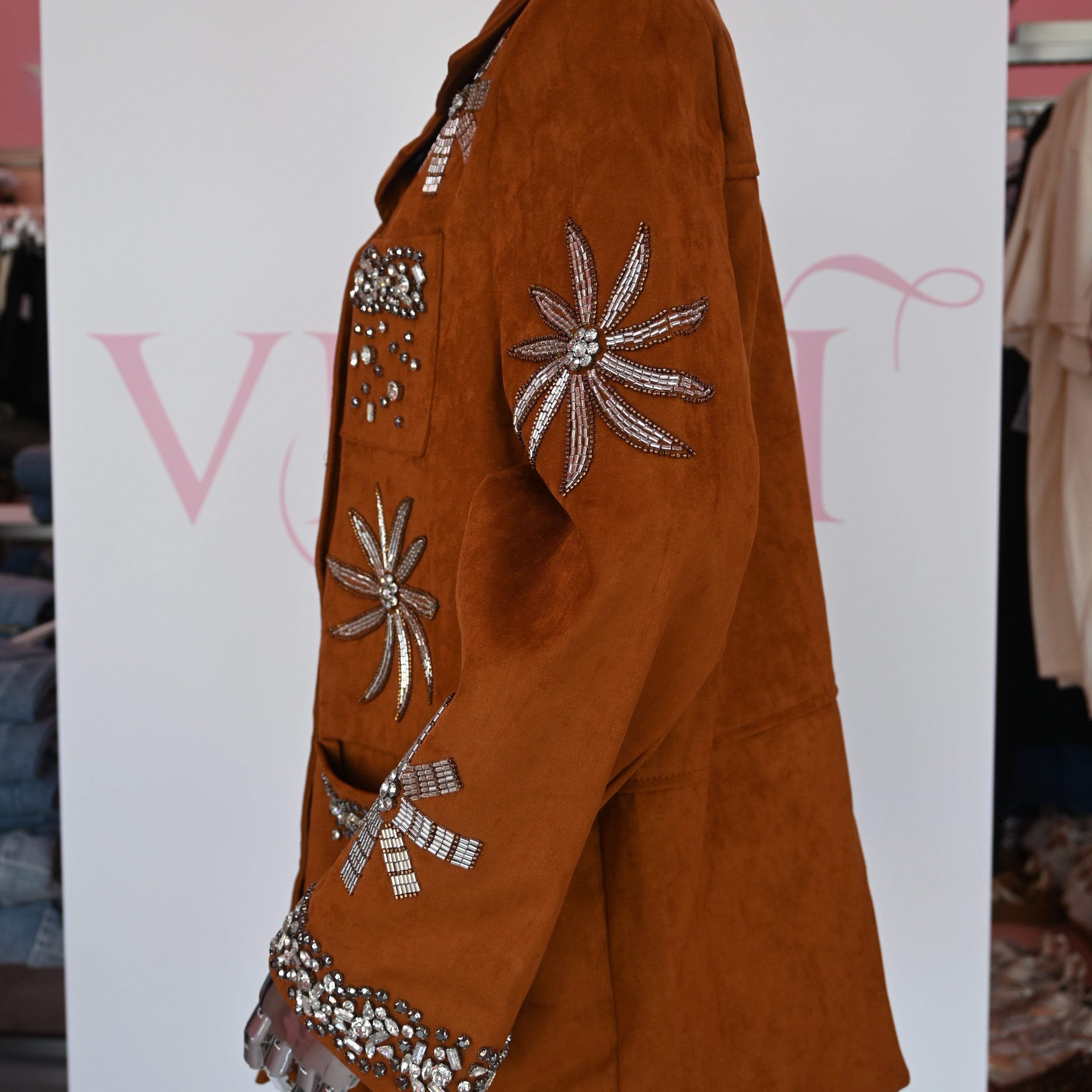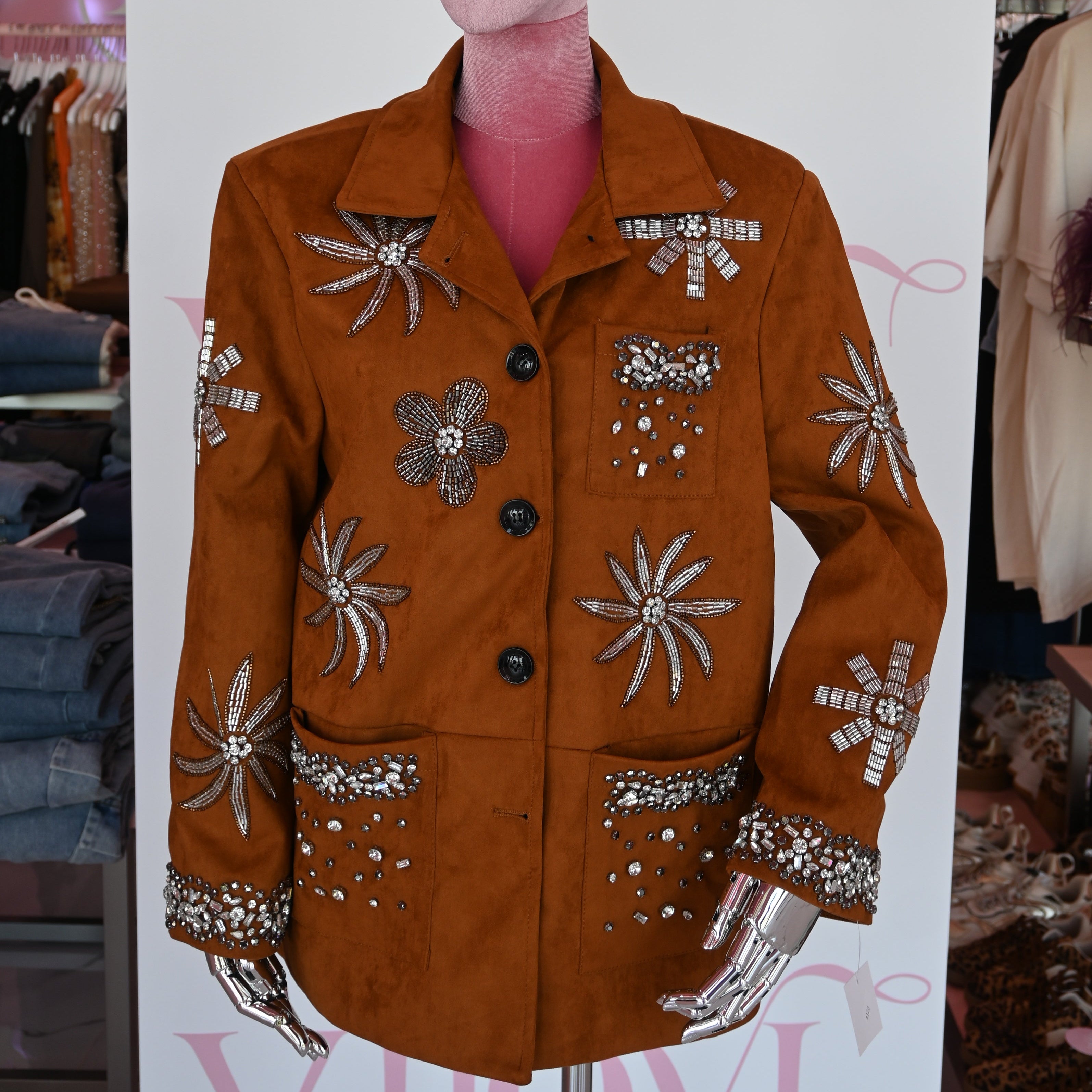 Saco con aplicaciones, corre hasta un talla L es unitalla.