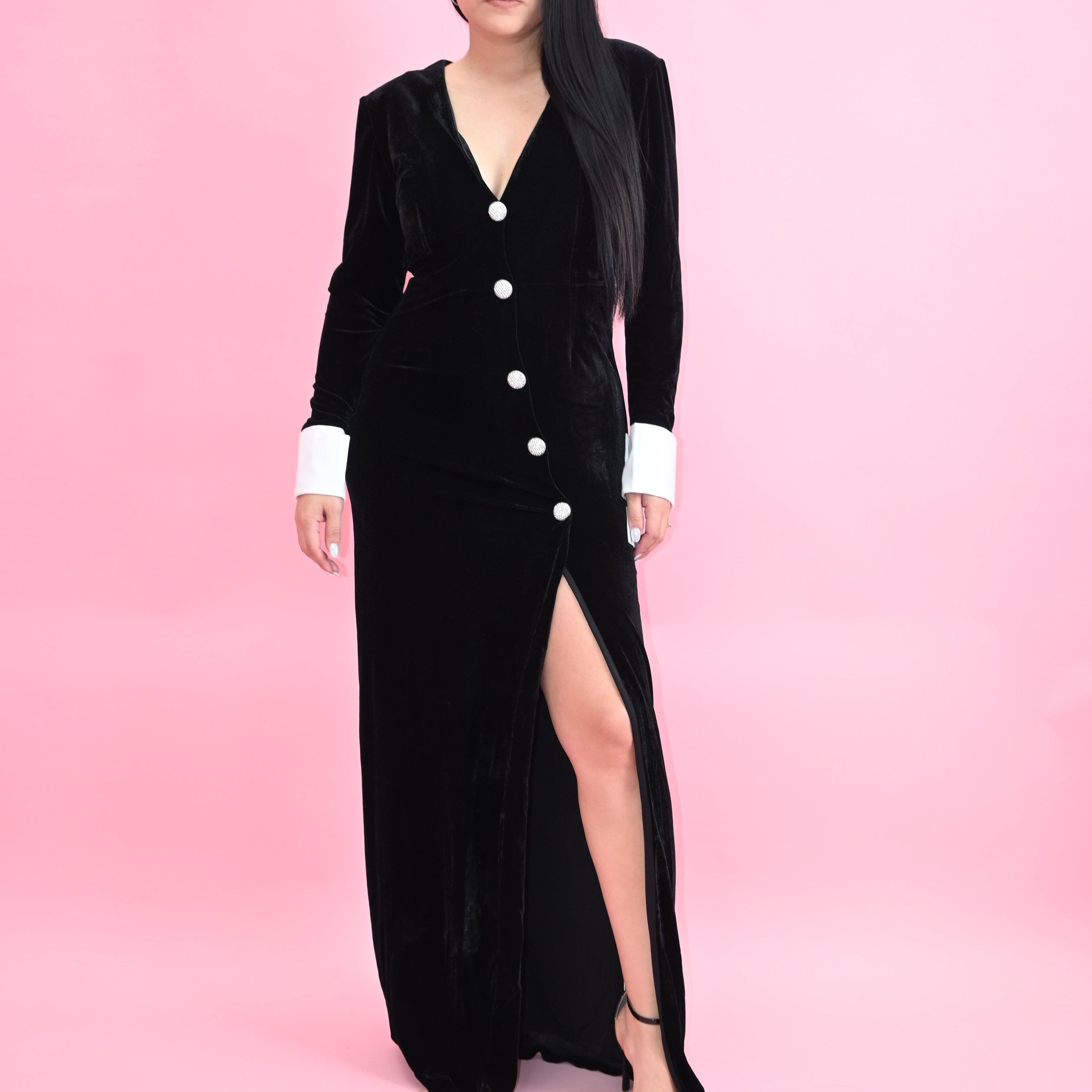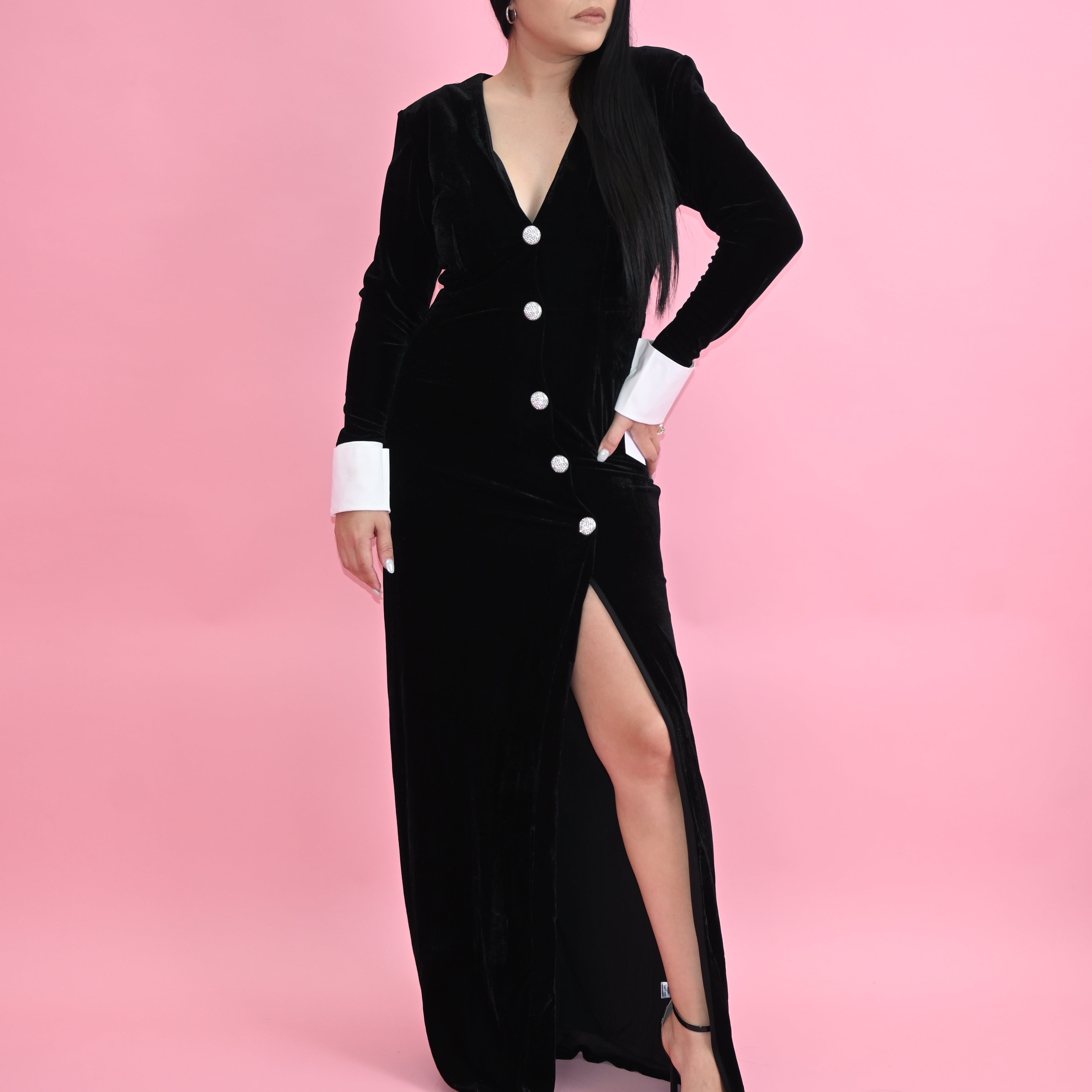 Vestido largo su tela es pana, estira un poco la tela, corre a su talla.