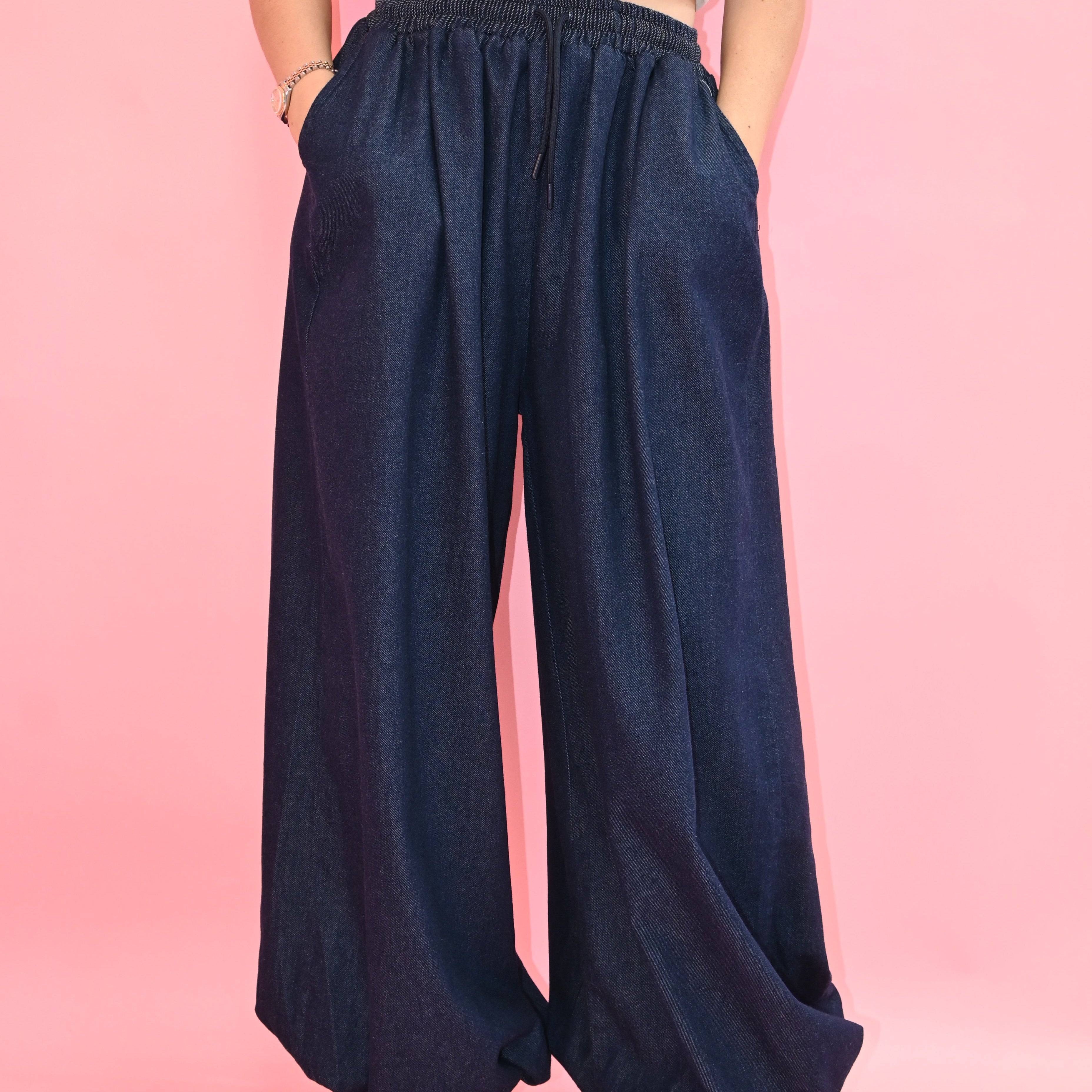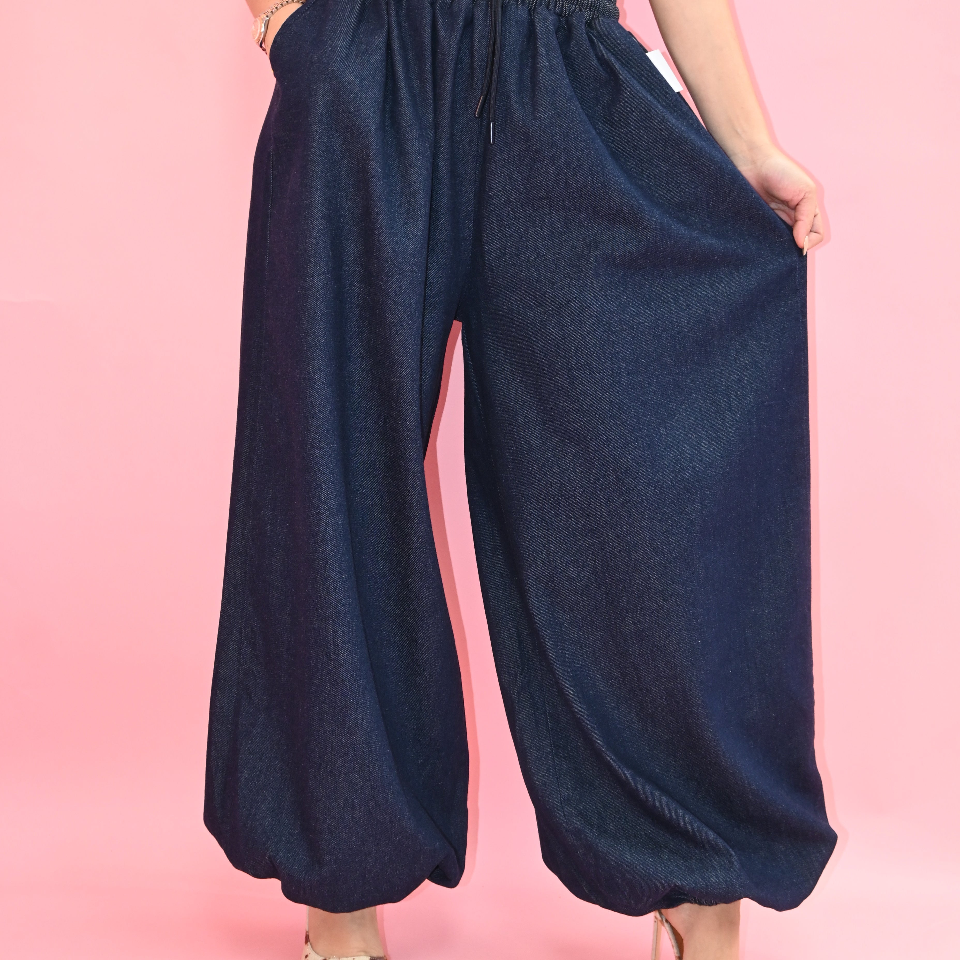 Pantalon de mezcllla tipo aladdin, elastico en la cintura.