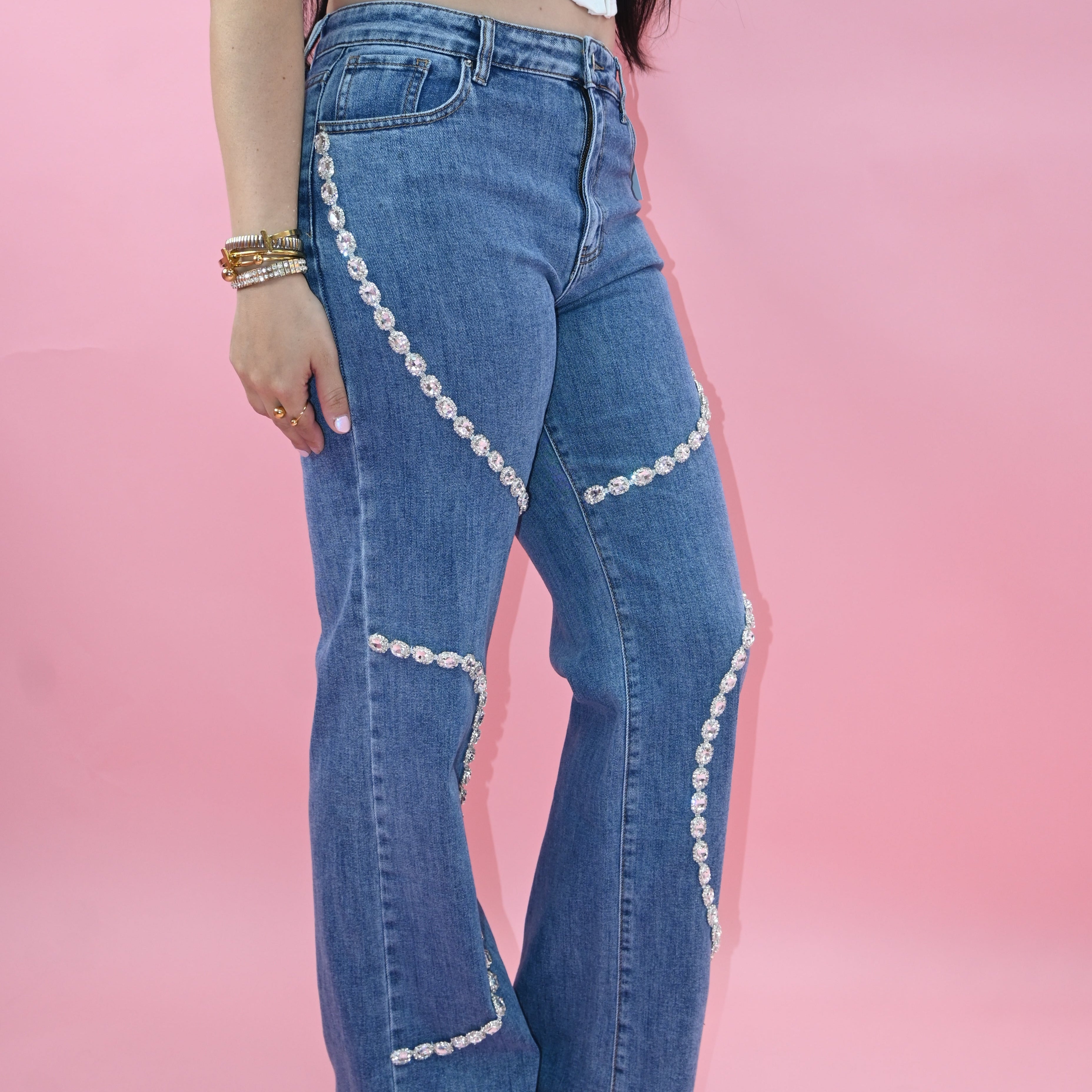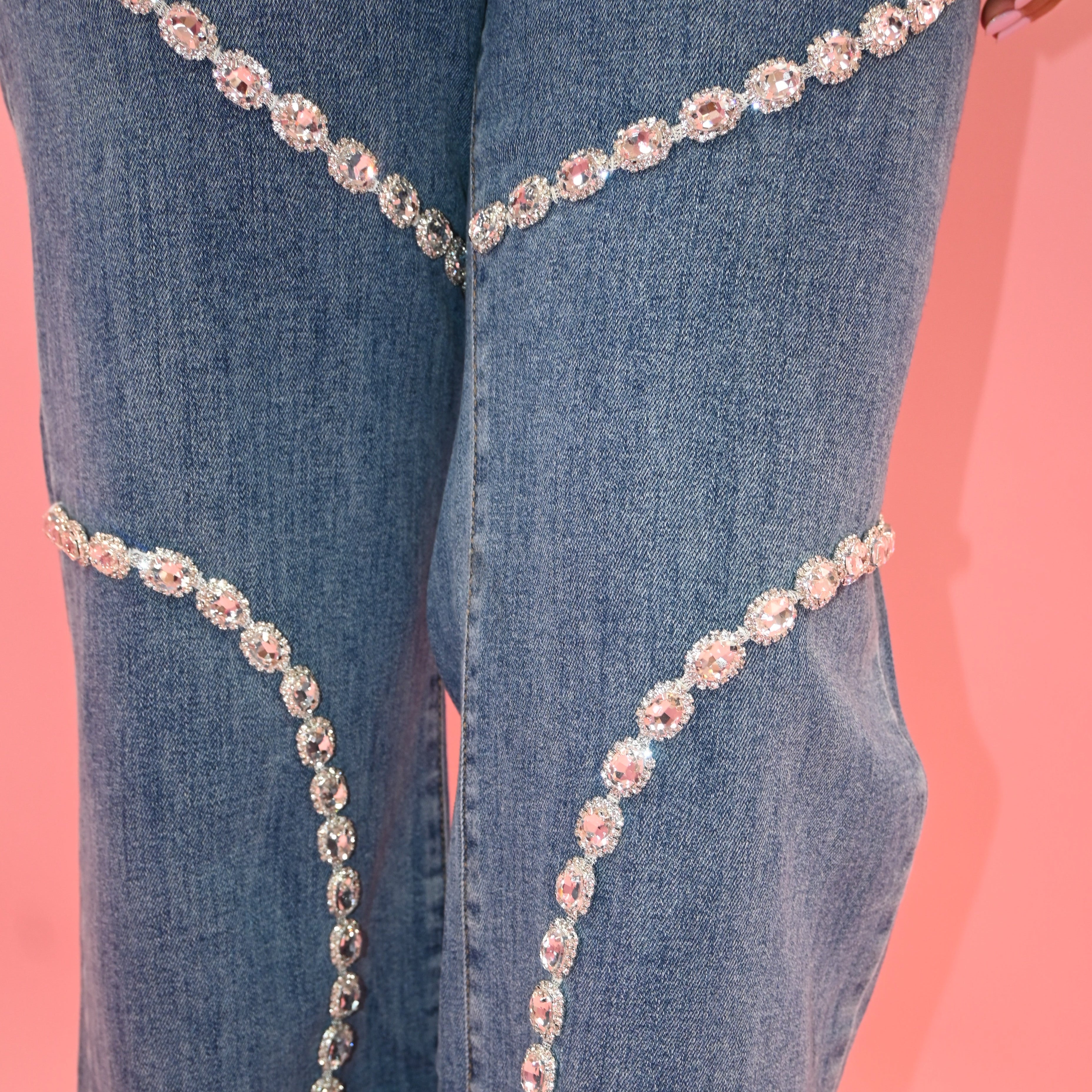 Pantalon de mezclilla su tela estira un poco, aplicacion de piedras grandes.