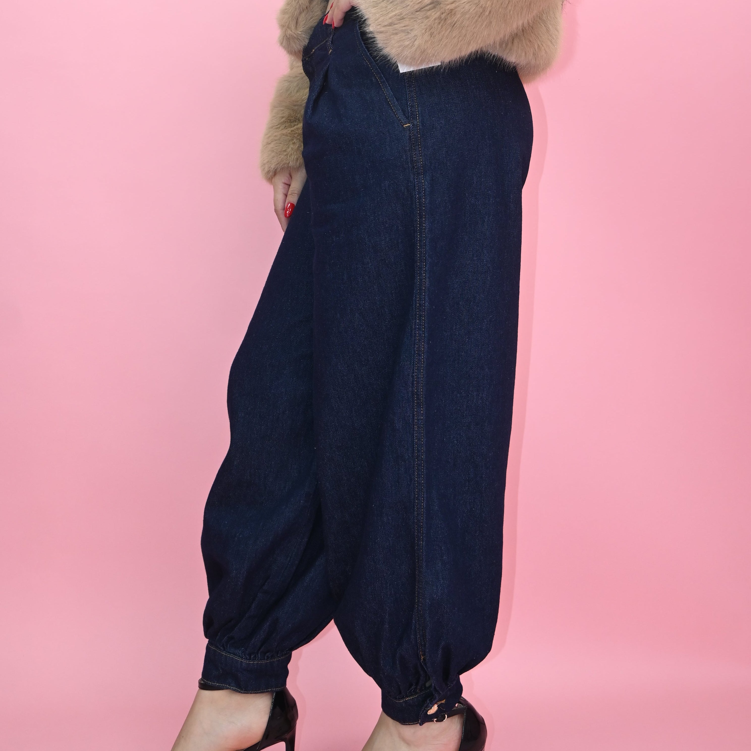 Pantalon de mezclilla tipo aladdin su tela no estira.