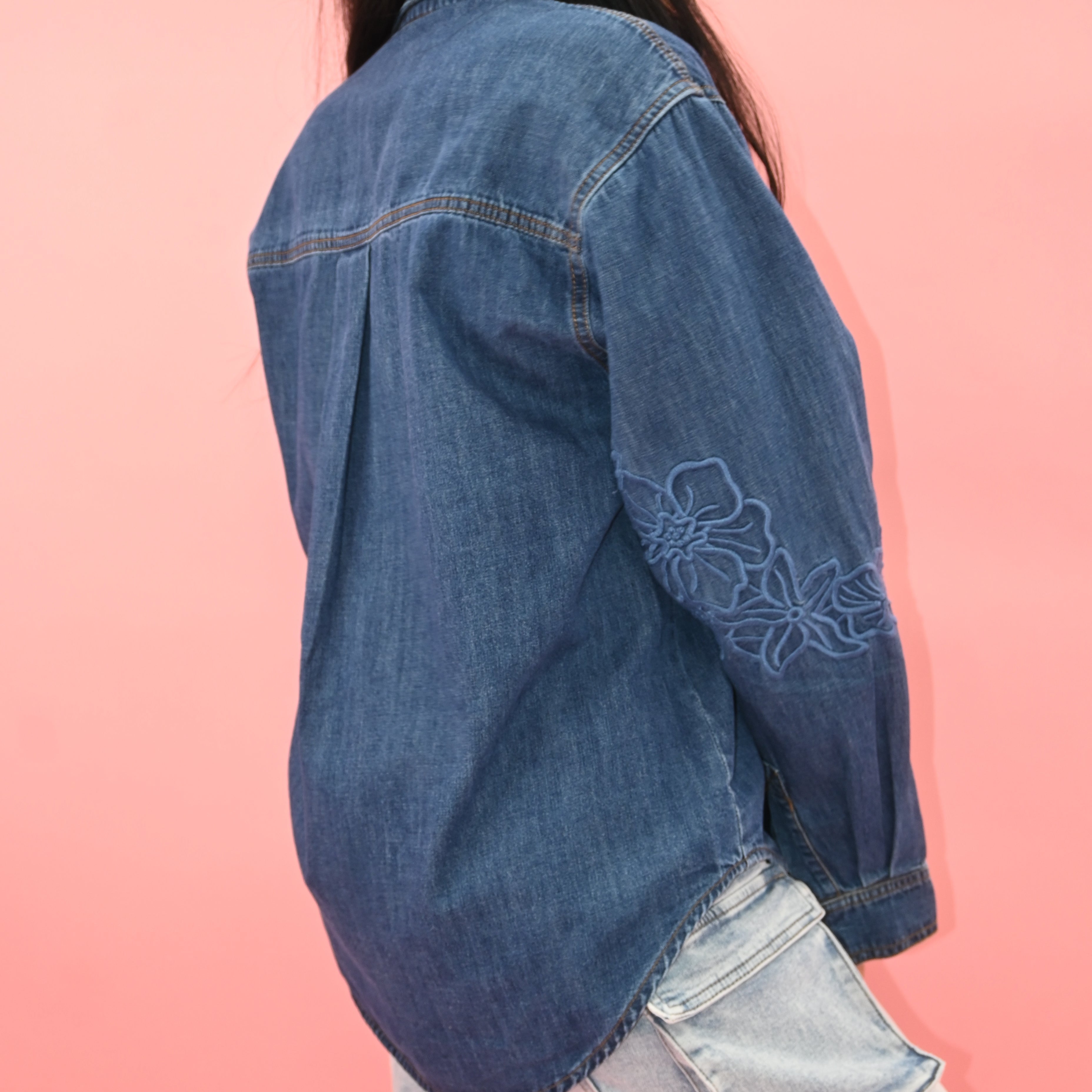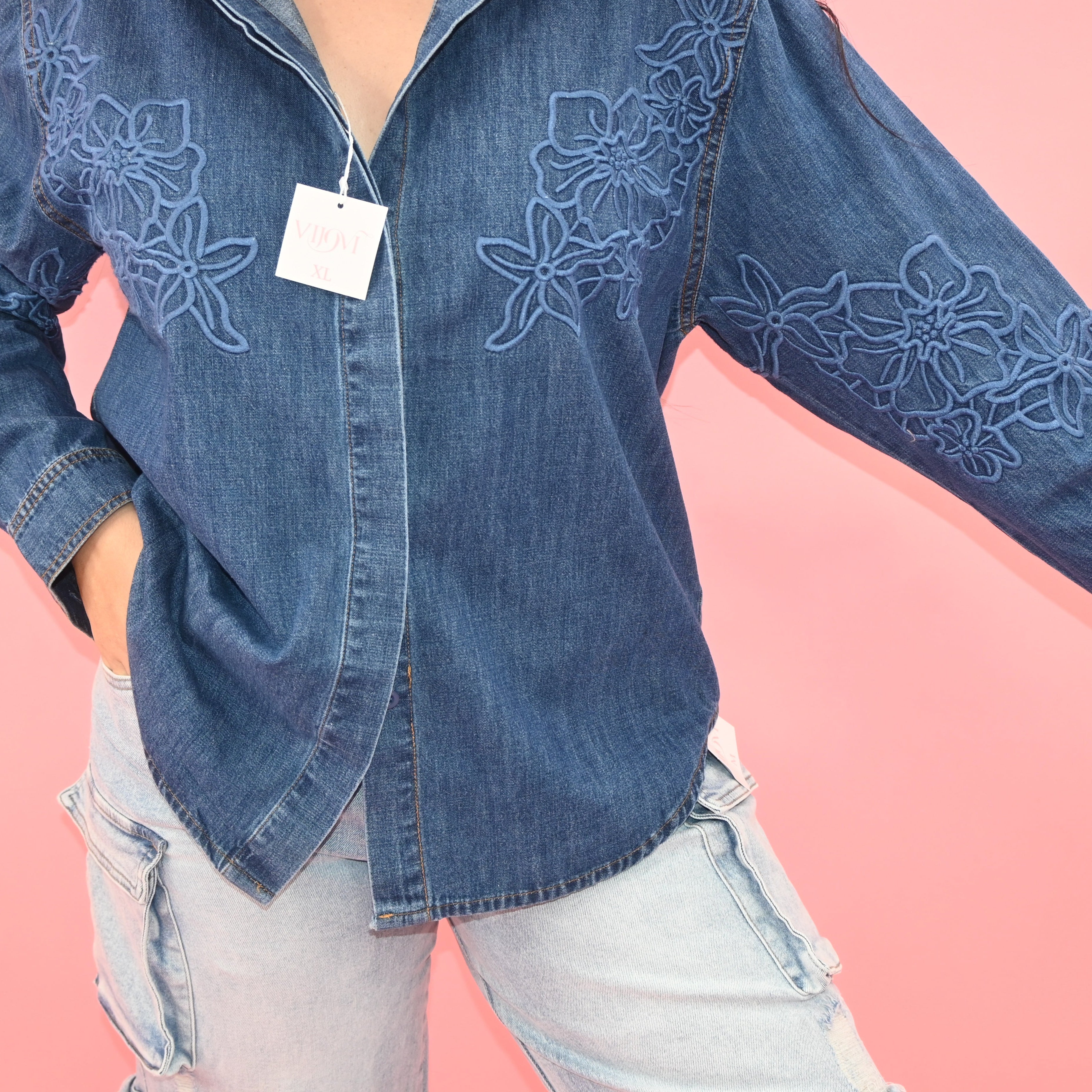 Blusa de mezclilla en plus su tela es frescay delgada la mezclilla.