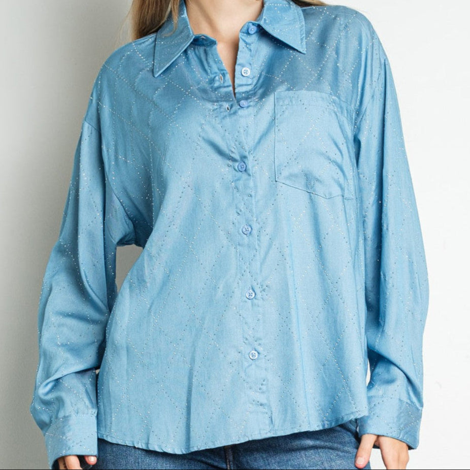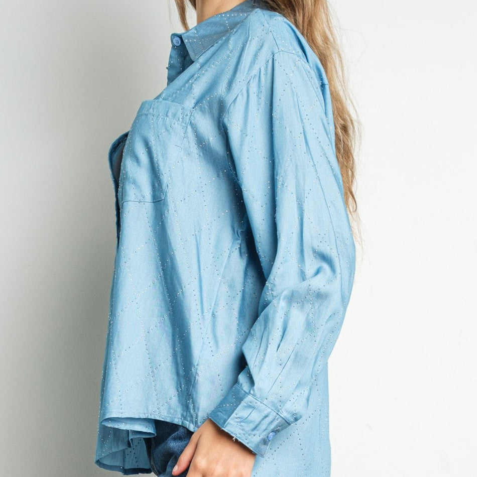 Camisa de mezclilla con piedras, su tela es suave, fresca corre a su talla, no estira.