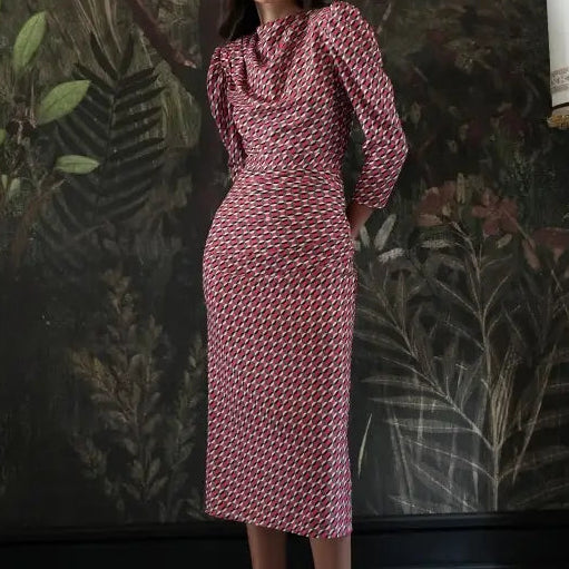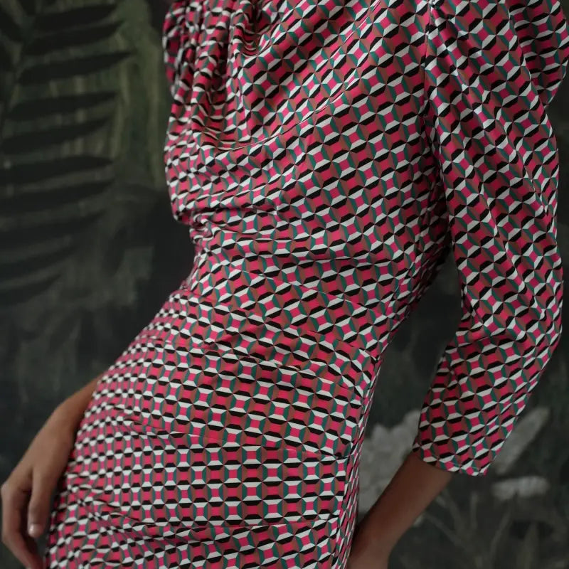 Vestido con estampado corre a su talla, estira un poco la tela.