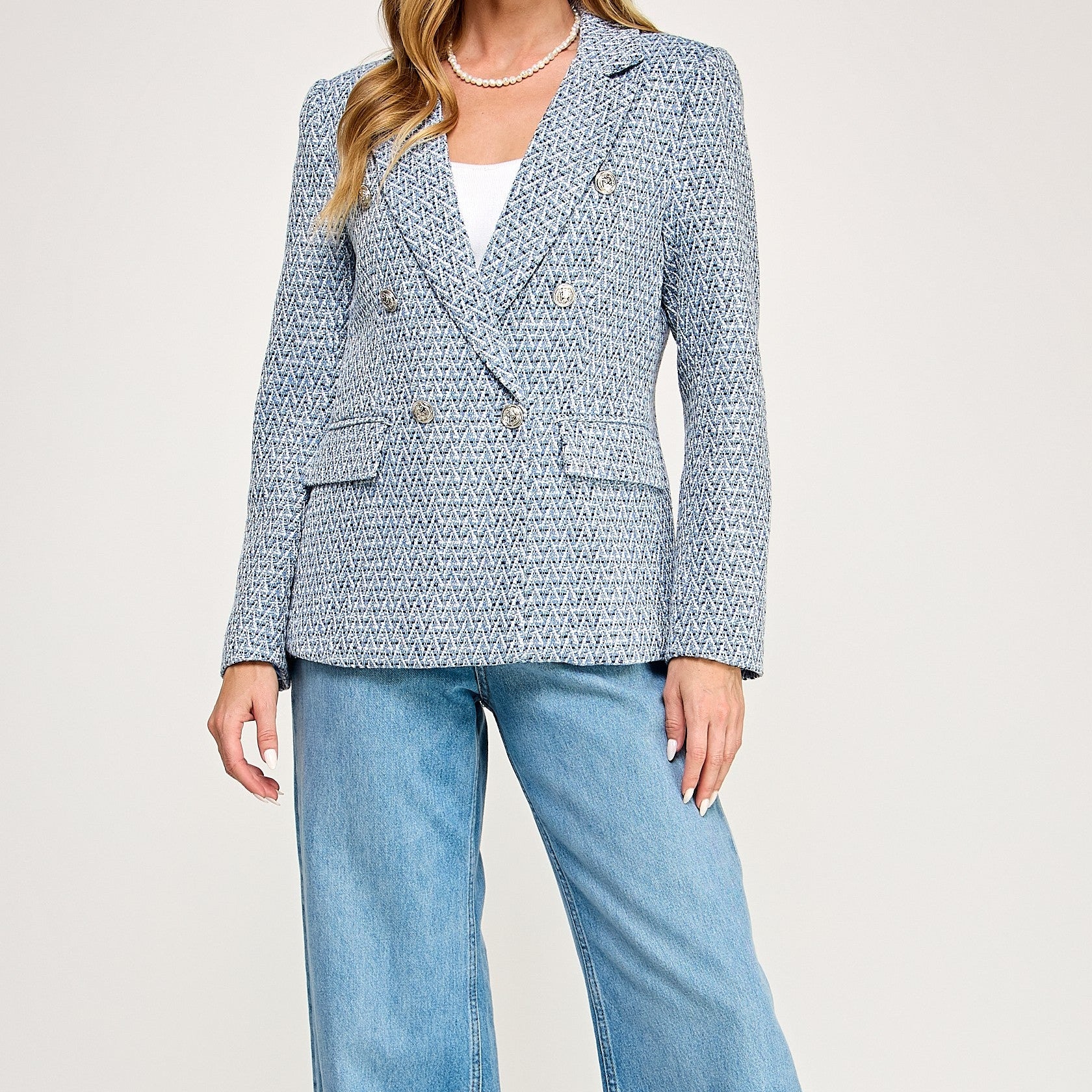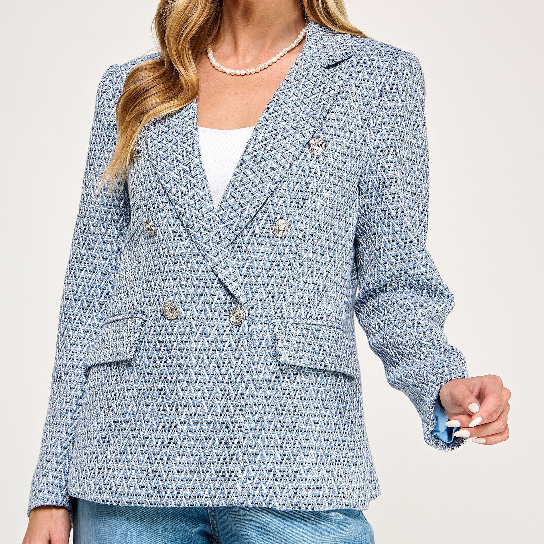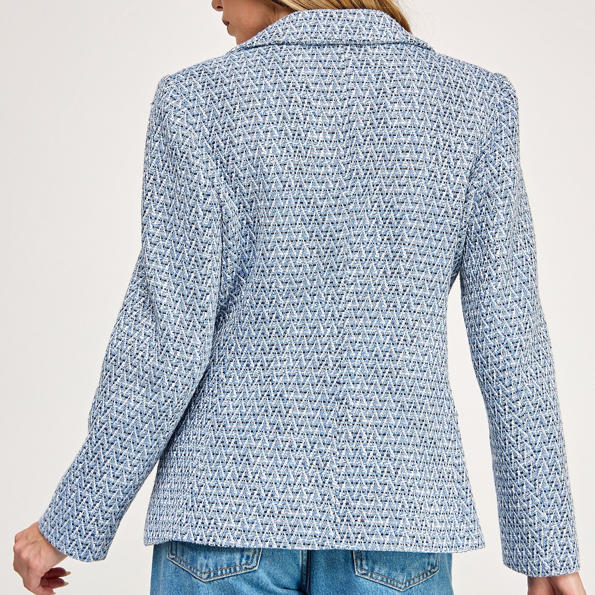 Saco tipo tweed corre a su talla no estira la tela.