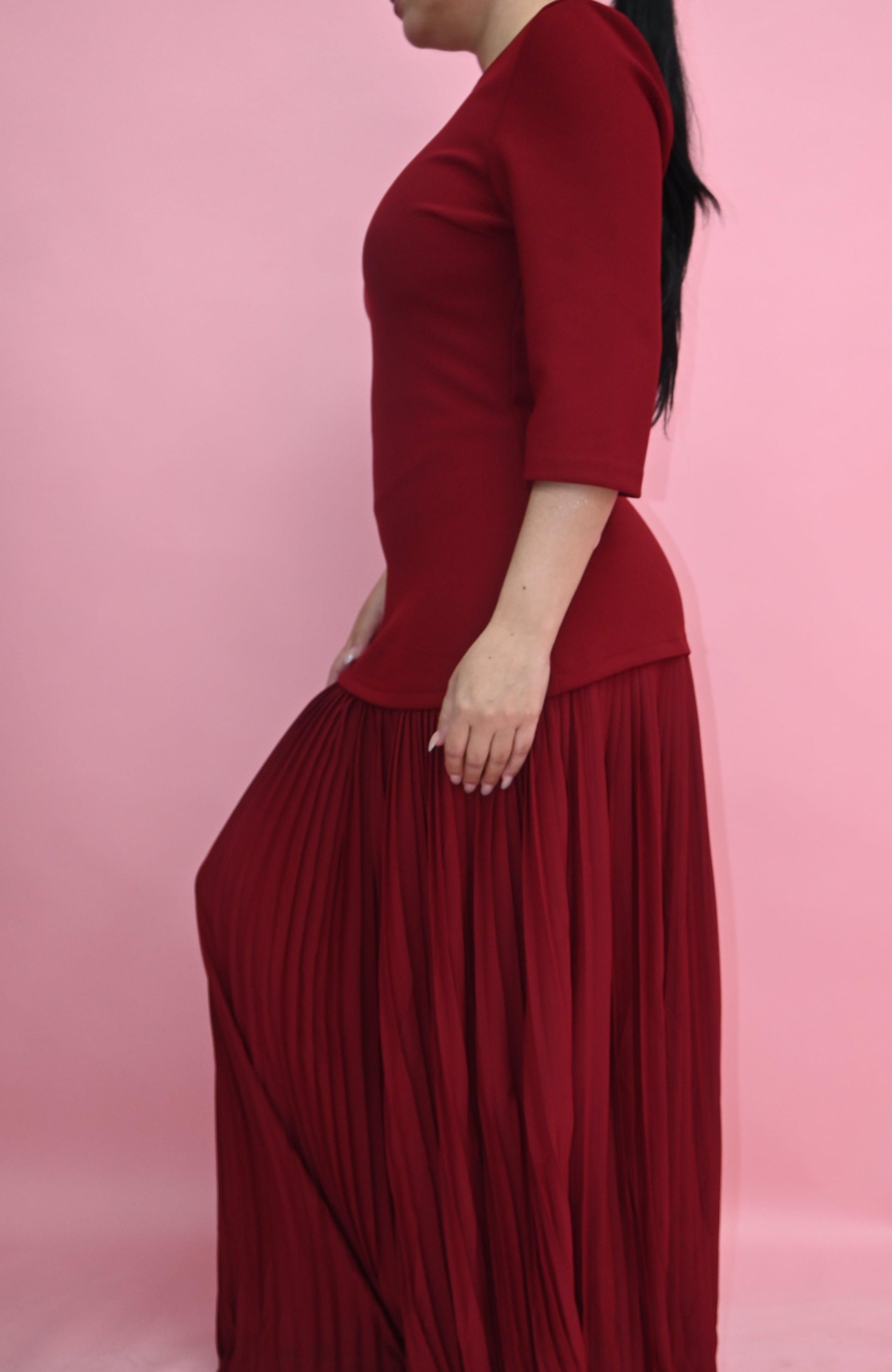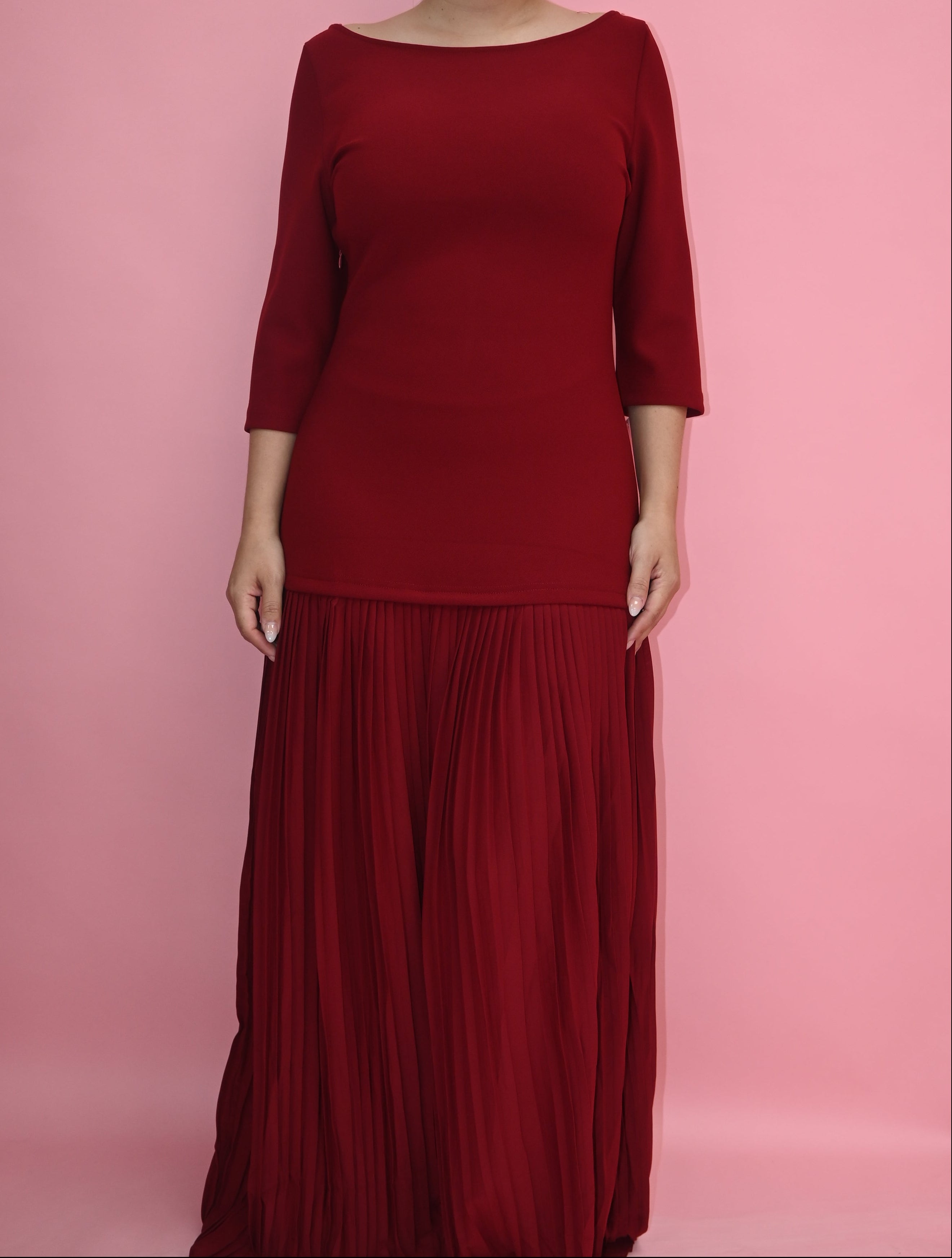 Vestido largo con pliegues en transparencia, la parte de arriba estira la tela.