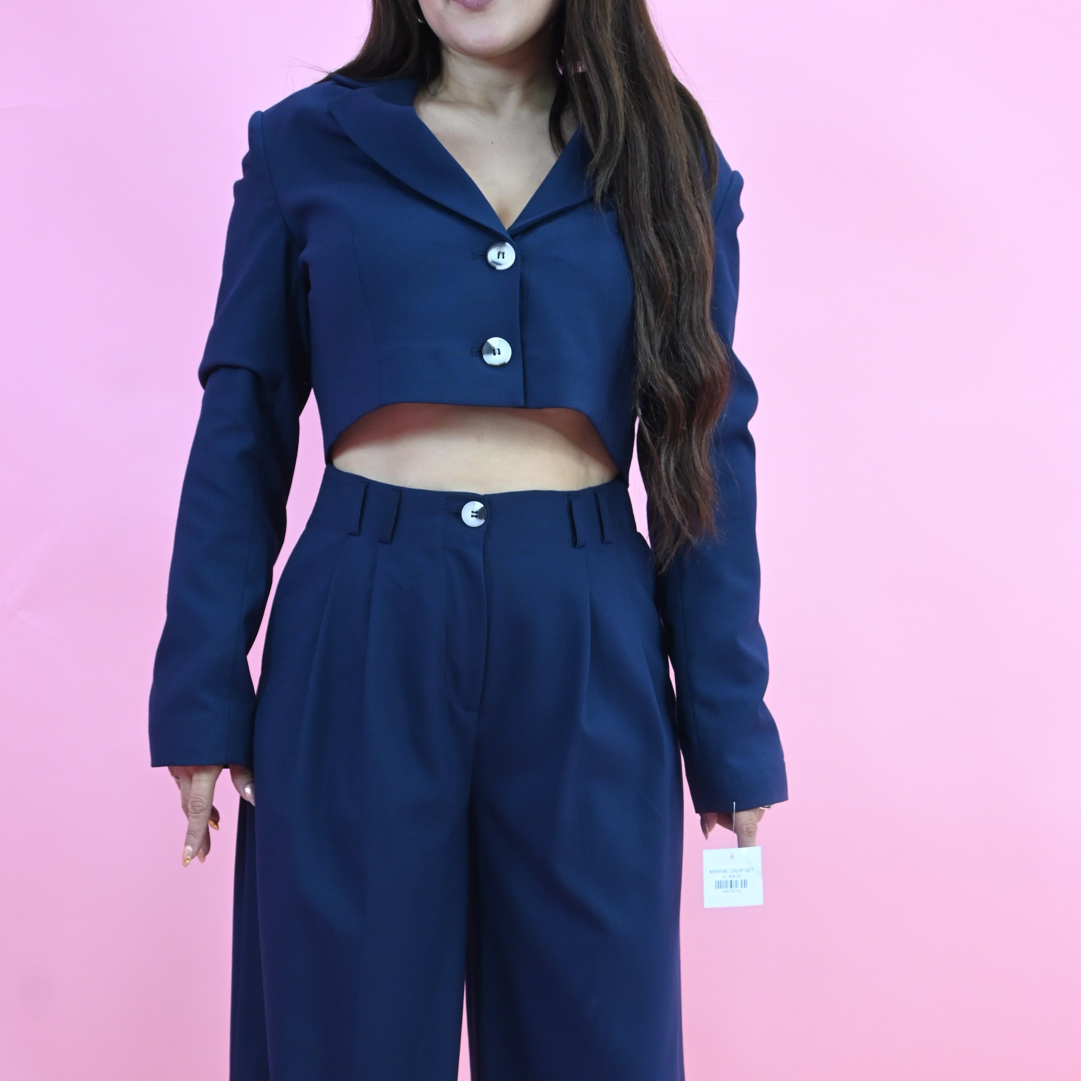Set de 2 piezas pantalon y saco tipo crop de vestir, el material no estira corre a su talla.