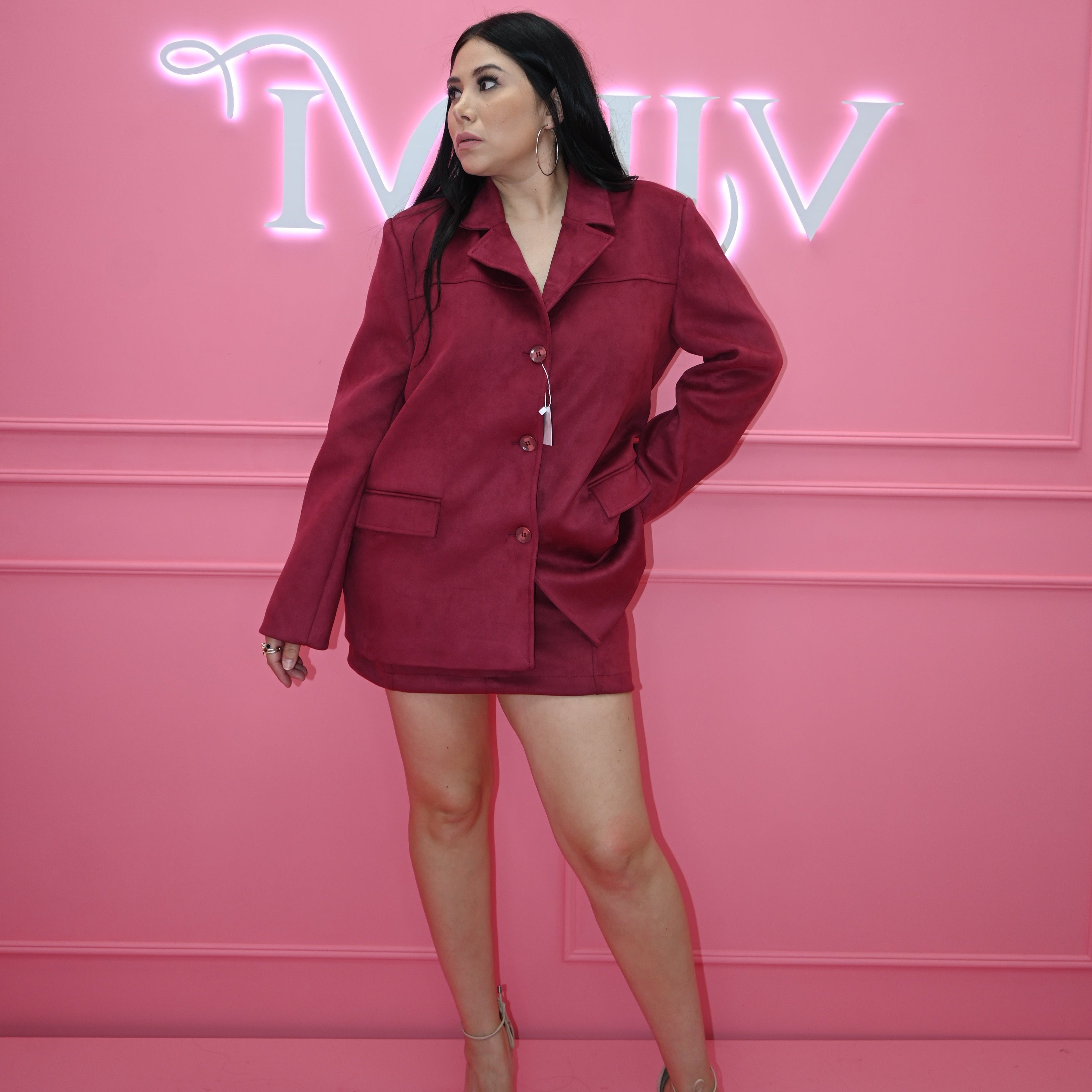 Set de 2 piezas en falda la tela no estira corre a su talla la falda, el saco es tipo oversize.