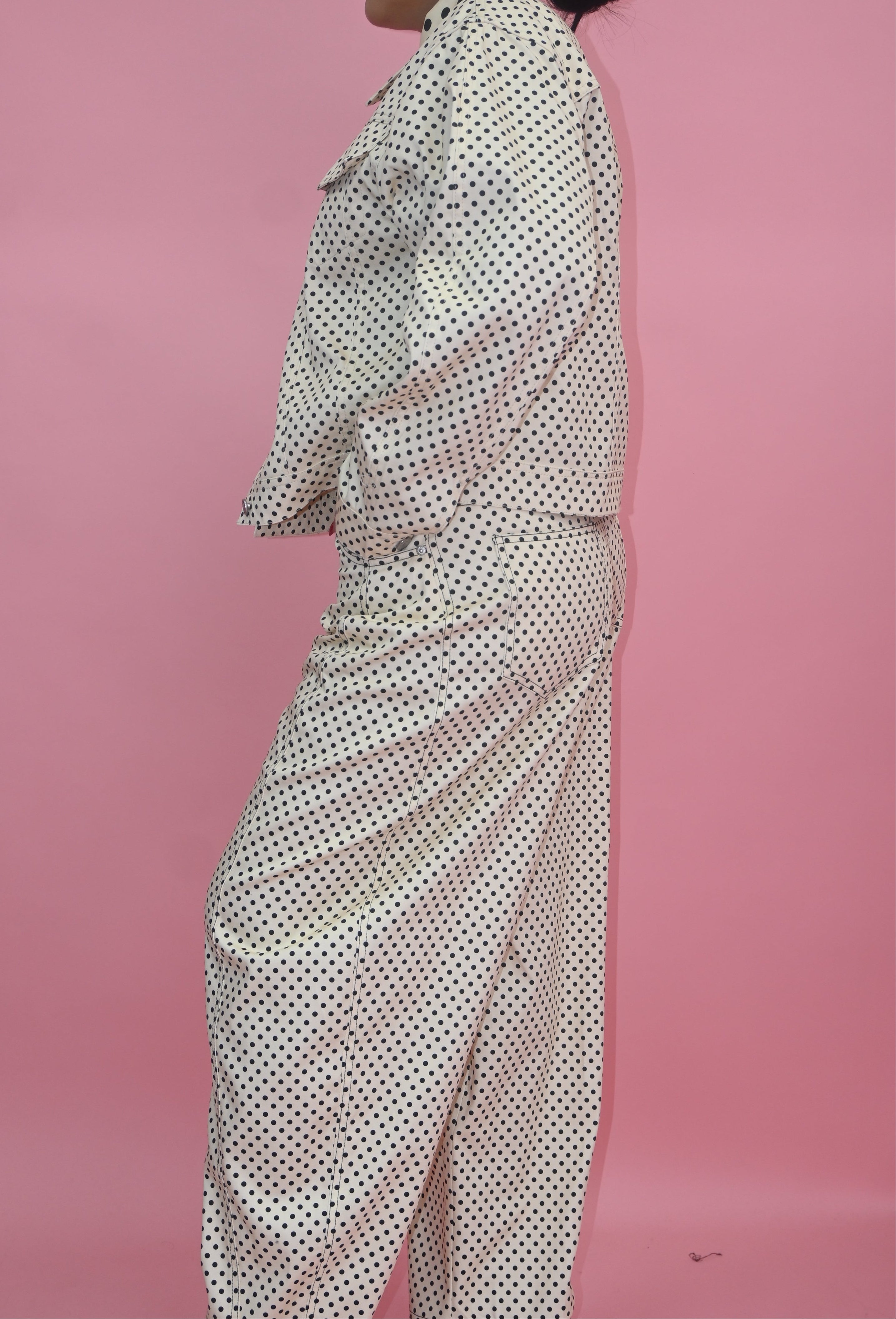 Set de 2 piezas en pantalon y jacket estilo barrel, su tela no estira corre a su talla.