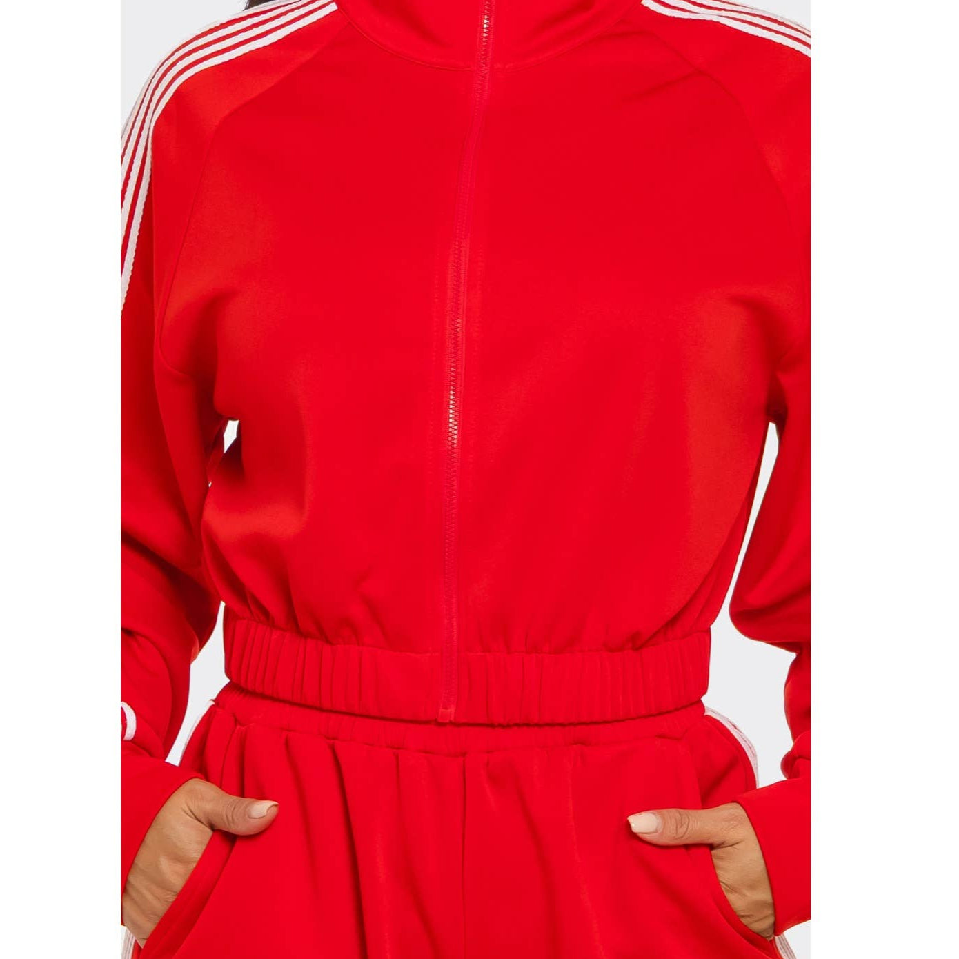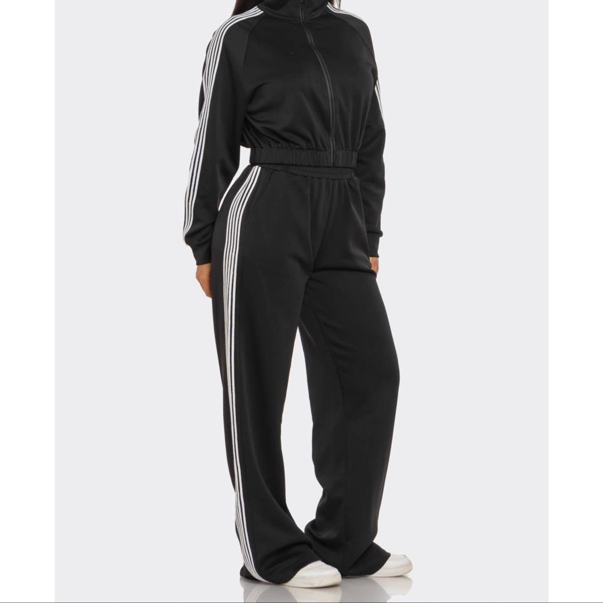 *** New Style *** Stripes Activewear Set. Side Striped Zip Up Mock Neck Jacket and Track Pants. Active Track Suit Pant and Jacket Set. - Stripes - Mock Neck - Side Stripes & Pockets 95% Polyester 5% Spandex