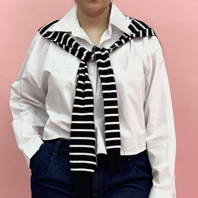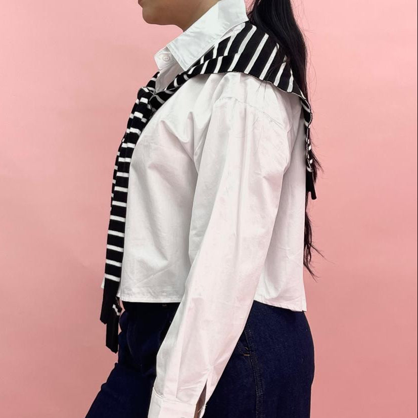Camisa blanca con aplicacion tipo sueter.